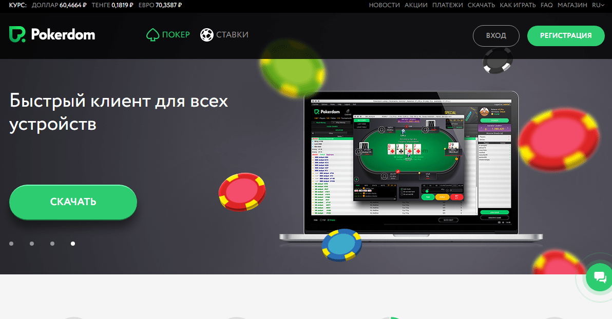 Несмотря на то, что каждый покер рум стремится предложить своим клиентам максимально комфортные условия для времяпровождения, большинство операторов уже давно отказались от обслуживания браузерных клиентов, мотивируя это разными причинами. Российская покерная онлайн комната PokerDom не входит в этот список.